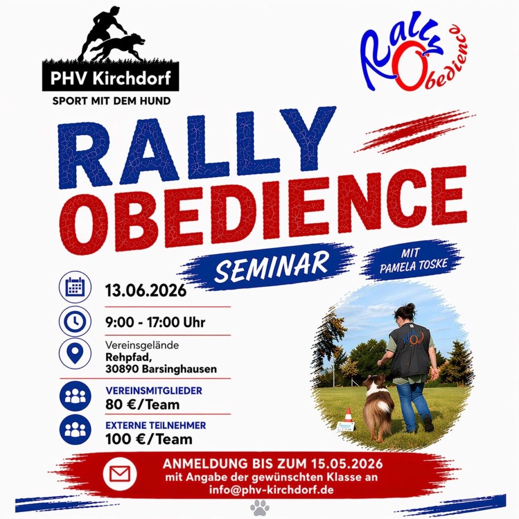 Am 13. Juni 2026 veranstaltet der PHV Kirchdorf ein spannendes Rally Obedience Seminar – eine großartige Gelegenheit für alle Hundesport-Begeisterten, ihr Training zu vertiefen und neue Impulse zu bekommen.